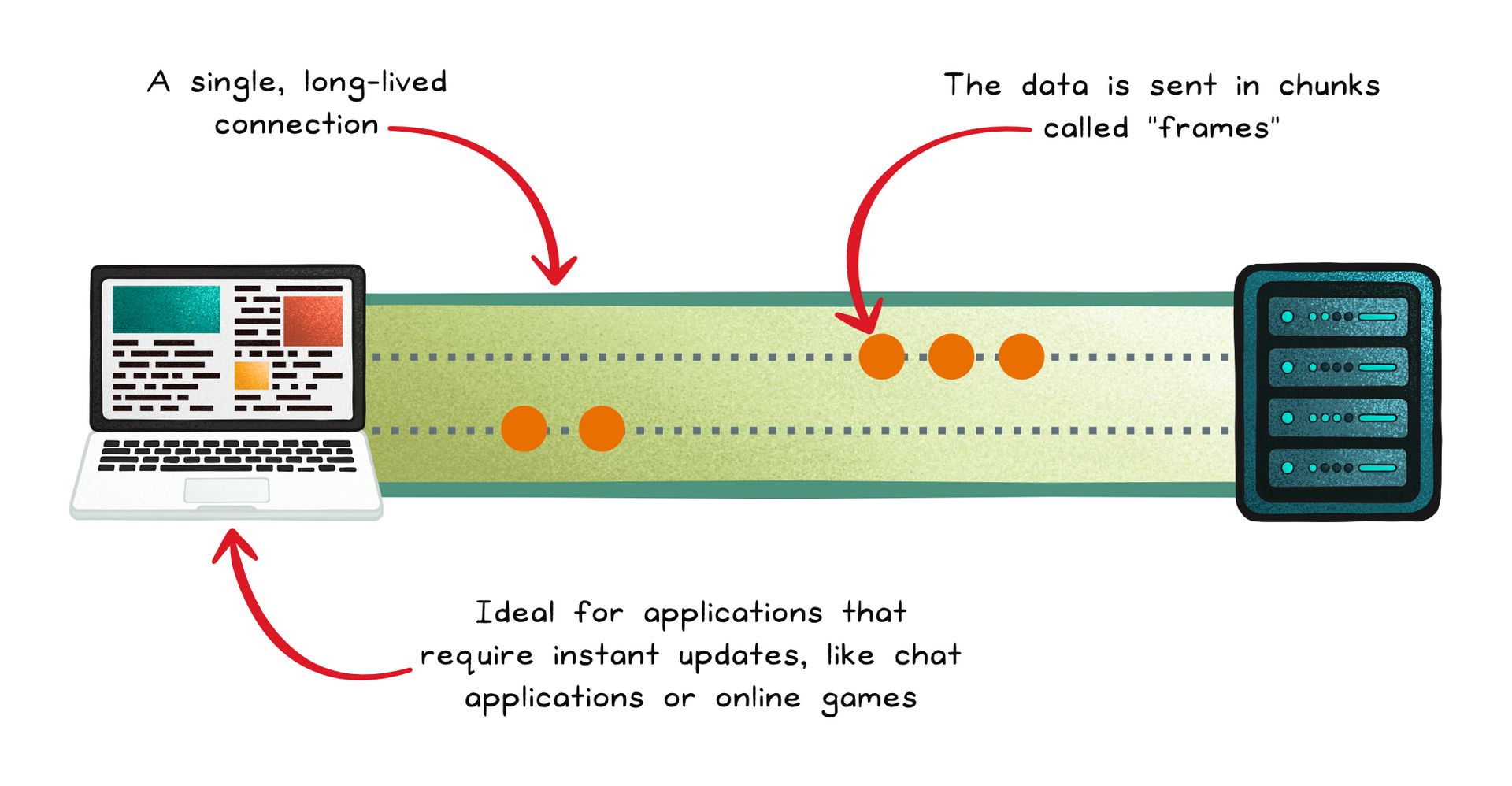 HTTP is reliable for fetching pages and APIs, but it only delivers data when the client explicitly asks for it. That’s wasteful when you need frequent, small updates or server-initiated events.